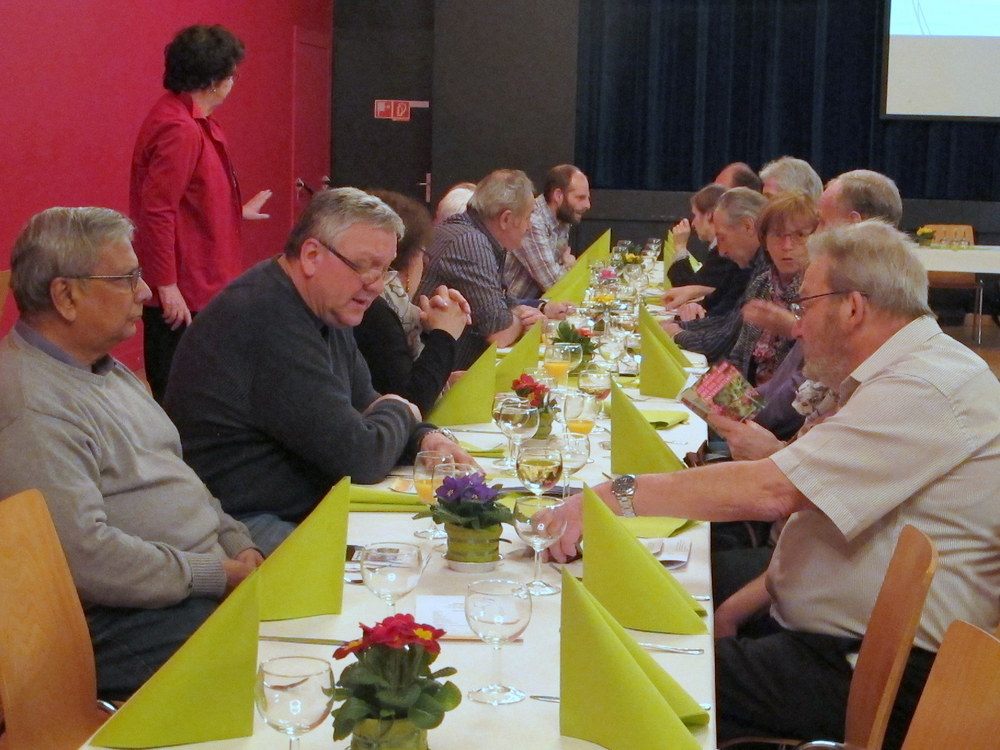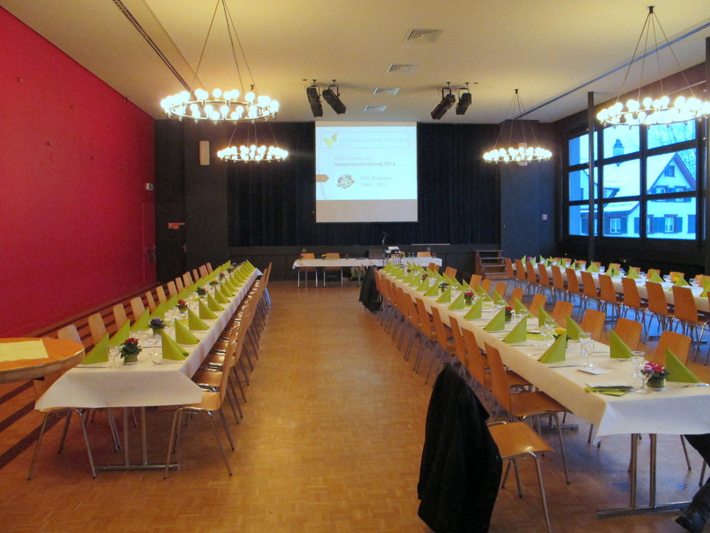Zu Beginn der HV konnte die Teilnehmer auf das 70-Jahr-Jubiläum des FGV Bruggen anstossen. Während dem Essen wurde ein Rückblick in Bildern über die letzten 30 Jahre des Vereins gezeigt. Nach 30 Jahren Vorstandstätigkeit (wovon 27 Jahre als Präsident) trat Niklaus Lötscher von seinem Amt zurück und wurde entsprechend verabschiedet, sowie zum Ehrenmitglied ernannt. Hilda Rohner, Regionalvertreterin Ostschweiz, überbrachte die Glückwünsche des SFGV und übergab an Niklaus Lötscher die Verdienstauszeichnung des SFGV. Bea Kurz gratulierte dem Verein im Namen des Zentralverbandes zum Jubiläum. - Der Vorstand wurde von 5 auf 7 Mitglieder erhöht. Neu in den Vorstand gewählt wurden Edith Stürmer, Michael Rutschmann und Reto Pfister. Das Präsidium bleibt vorerst vakant. - Die Jahresrechnung wurde genehmigt; sie schloss mit einem Gewinn von Fr. 975.-. Der Antrag bezüglich Beschaffung eines zusätzlichen, jedoch leichteren Häckslers wurde abgelehnt. Der Antrag, dass 2016 6 Stunden Gemeinschaftsarbeit zu leisten sind, bzw. bei Nichtleistung Fr. 25.-/Stunde zu bezahlen sind, wurde angenommen.